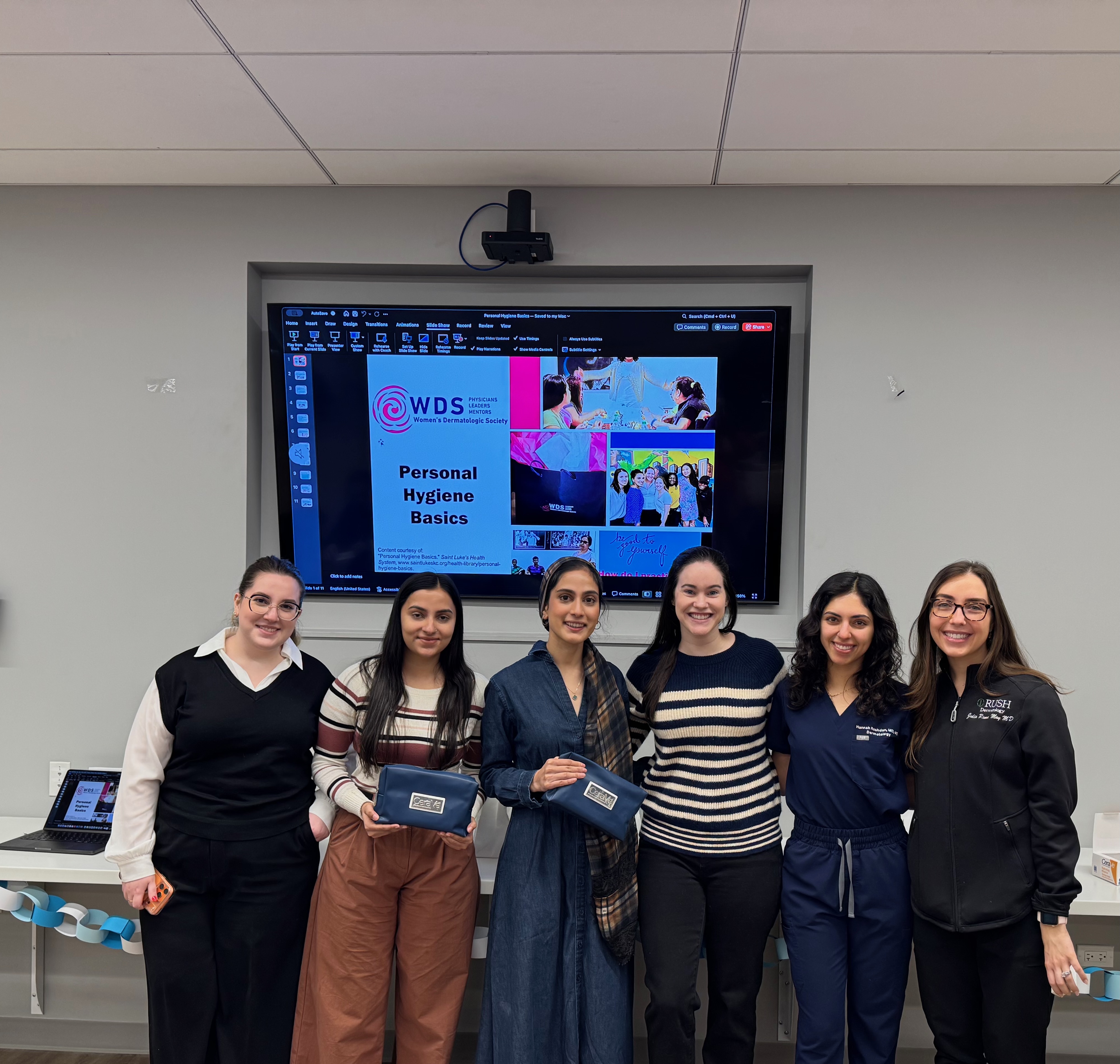 October 24, 2018 - House of the Good Shepherd - Chicago, IL Drs. Rebecca Tung, Wendy Kim, Andia Mitri, Jaquelyn Dang, Jessica Vera, and Kari Kopecky took part in a shelter outreach event at the House of the Good Shepherd Women’s Shelter in Chicago, IL on October 24, 2018. Drs. Mitri and Dang did a great job presenting on skincare and nutrition on a budget to the appreciative group of 12 residents. The format of talks over lunch, made for a relaxed and comfortable setting, sparking great questions and conversation with the women. The women especially loved the takeaway bags complete with toothbrushes from Delta Dental, skincare items from Dove and Galderma, chap stick from Eco Lips, and sunscreen from BadgerBalm. A big thank you to Lilly Dermatology for sponsoring these events.